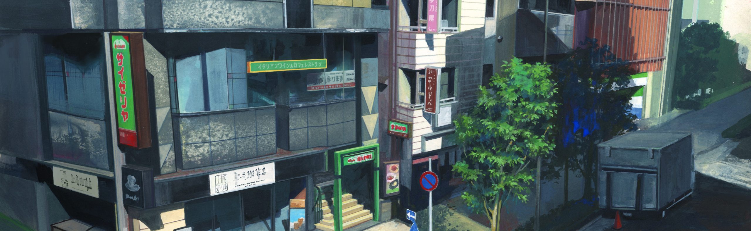 アニメ背景の手法で絵の具で描いたオリジナルの2D背景画シリーズ。日常の奥行きをテーマにしています。